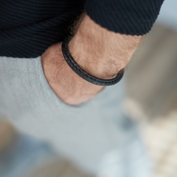 Zwart leren armband met massief zilveren bakslot model 171 op 21 cm