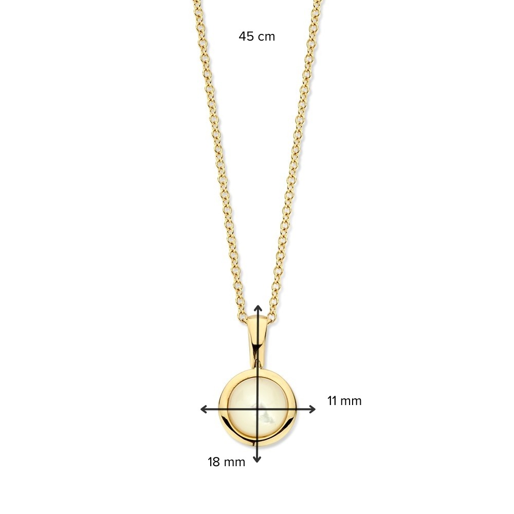 Prachtig geelgouden collier met ankerschakel en hanger met cabuchon geslepen parelmoer.