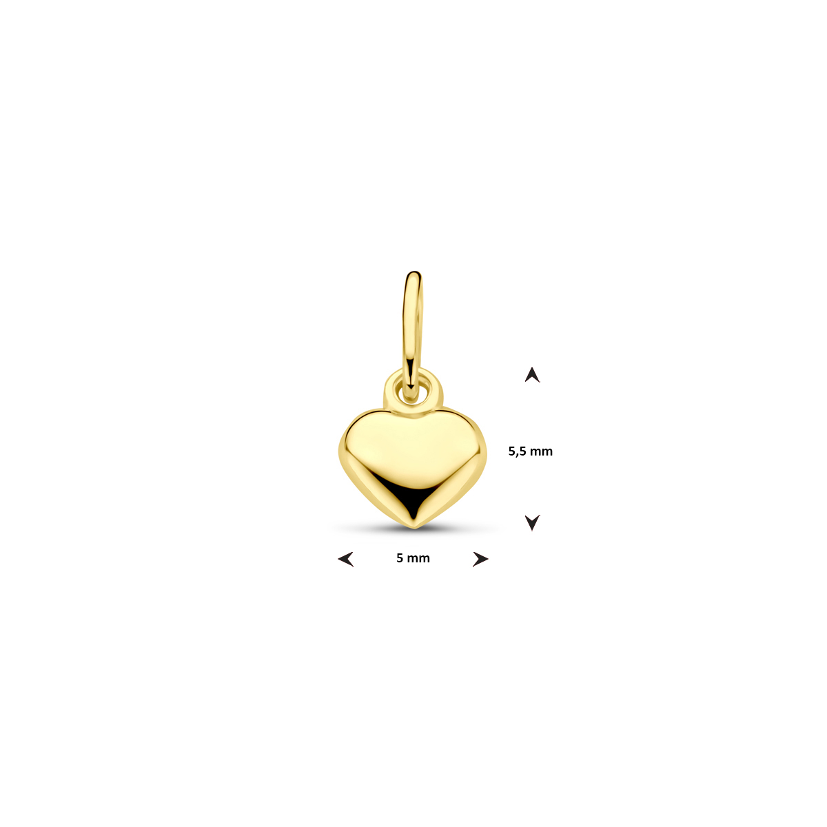 Geelgouden hanger met een hart uitgevoerd met een stevig hangoog. De hanger is ook verkrijgbaar in het wigoud.