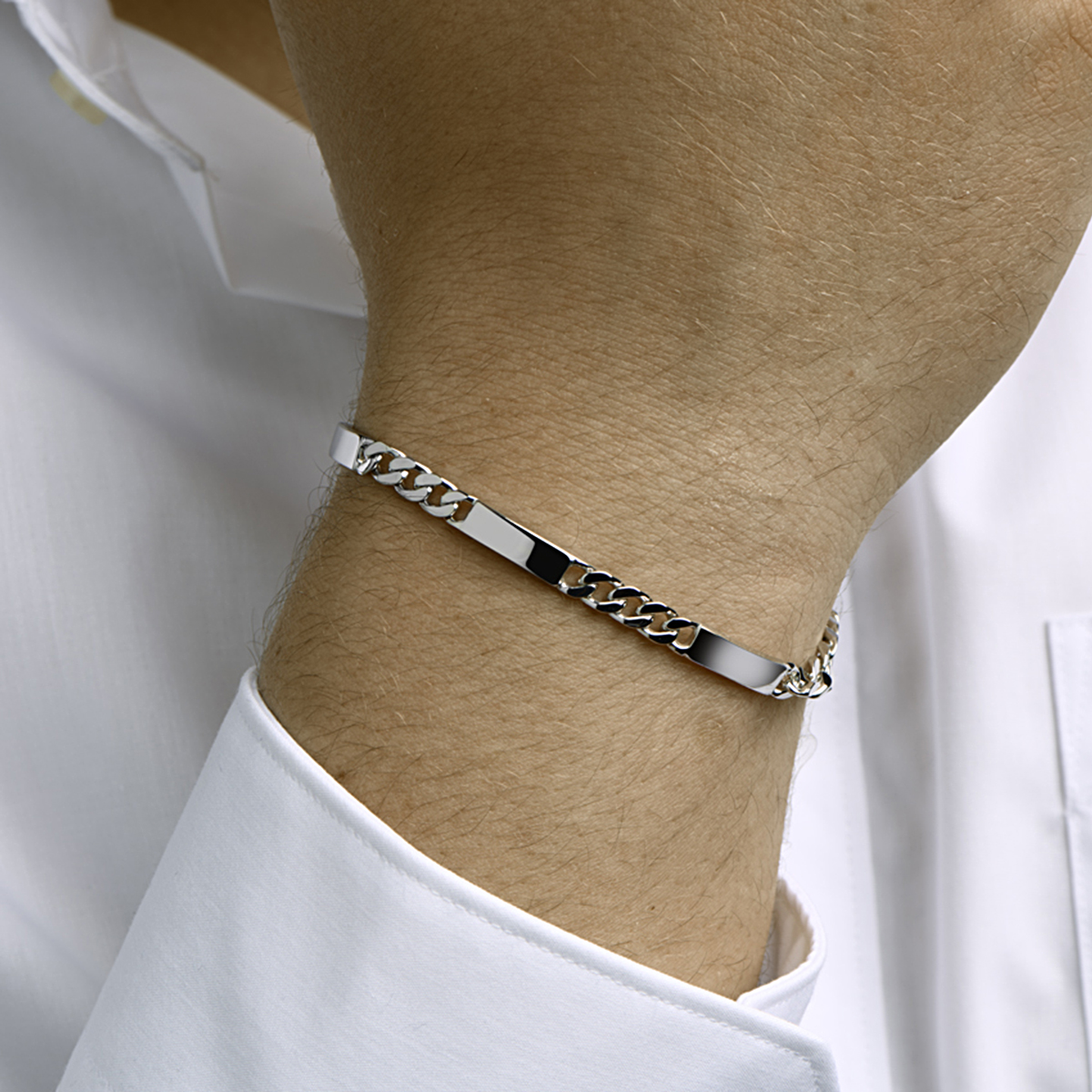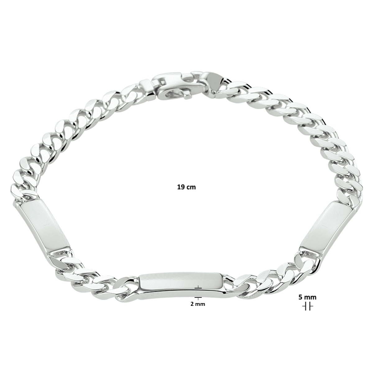 Gerhodineerd 925 zilveren graveerarmband met een breedte van 5mm en een stevige karabijn sluiting. De graveerplaat heeft een dikte van 2mm. De schakelbreedte is 5.0mm.