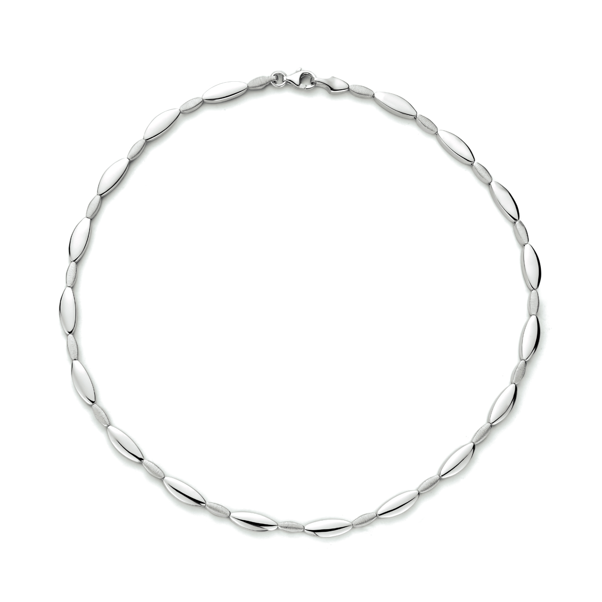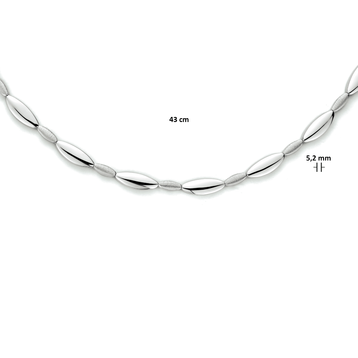 Gerhodineerd 925 zilveren collier uitgevoerd met een poli/matte afwerking en een stevige karabijn sluiting. Het collier heeft een breedte van 5.2mm en een draaglengte van 43cm.
