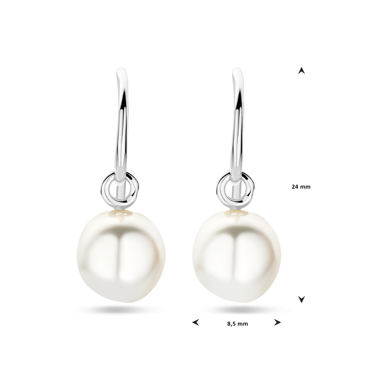 Gerhodineerd 925 zilveren oorhangers uitgevoerd met een parel. De oorhangers hebben een totale hoogte van 24mm.