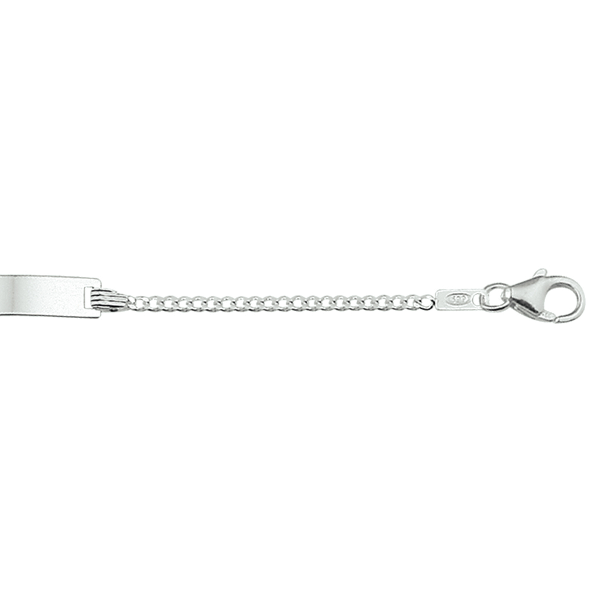 Zilveren graveerarmband. De lengte bedraagt 9cm met 2cm extensie. De breedte van de graveerplaat bedraagt 4.2mm en de dikte is 0.7mm.