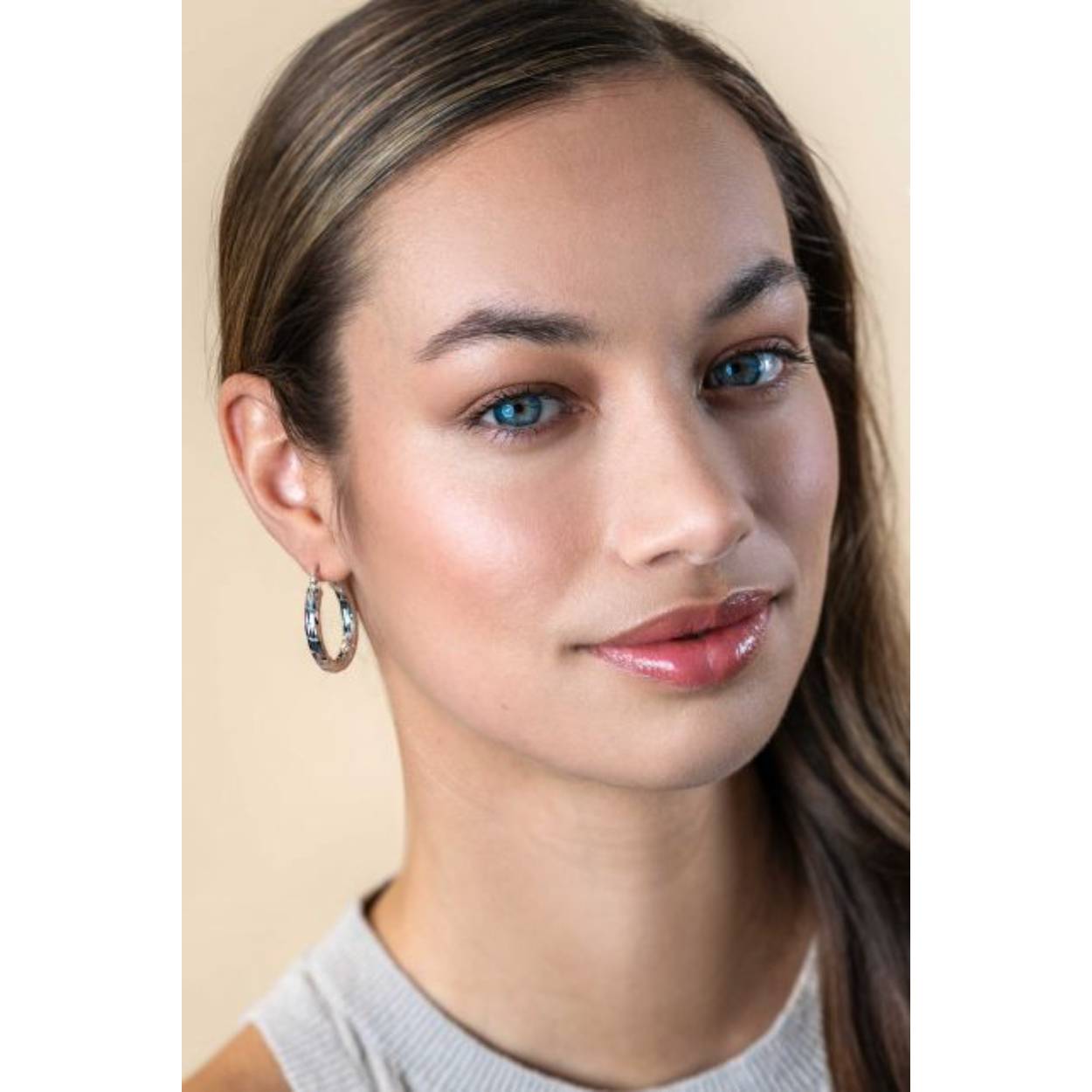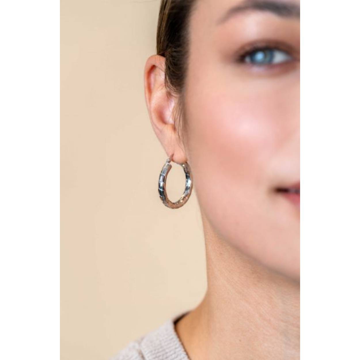 28mm ZINZI zilveren oorringen met mooi bewerkte buis 4,5mm breed en handige bovensluiting ZIO2575